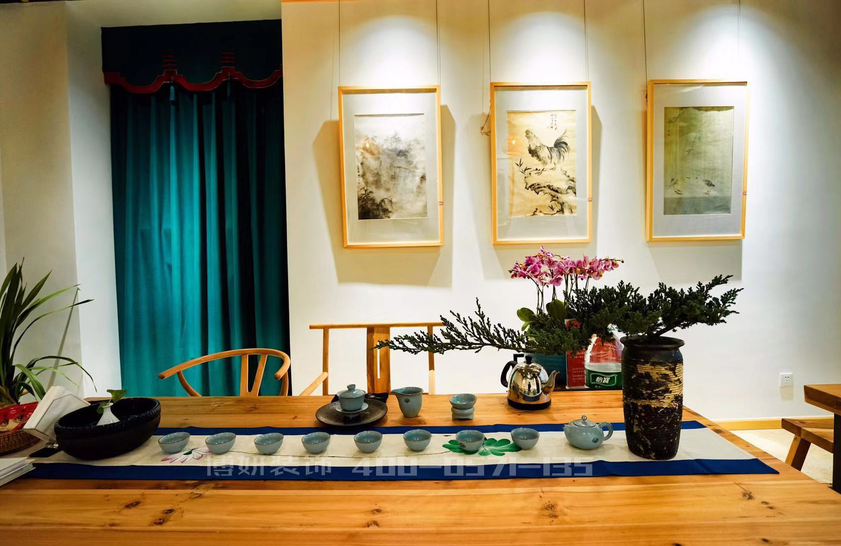 隔斷墻的設置,把整個茶葉展廳分隔為動和靜兩個展區,