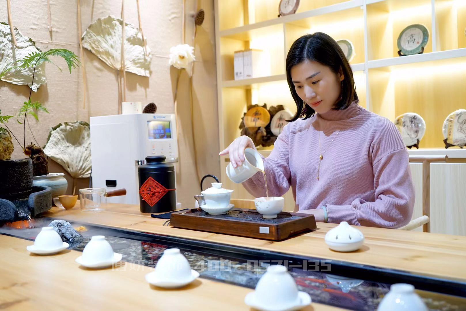 前面琳瑯滿目的產品,后面為茶藝展示以及品鑒的體驗空間。